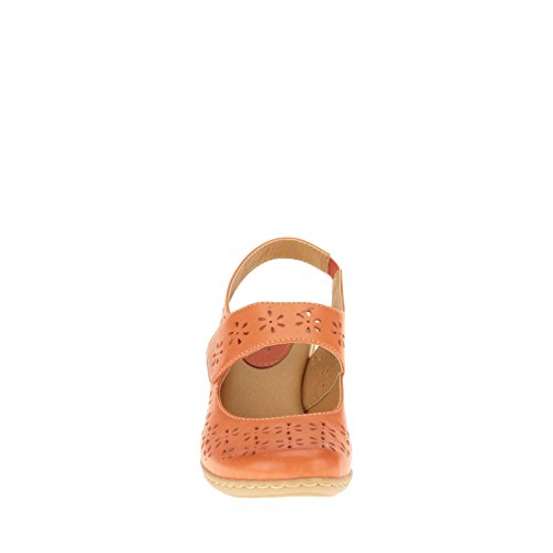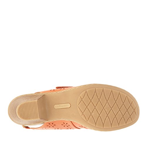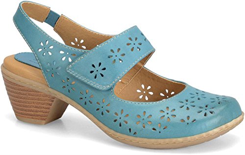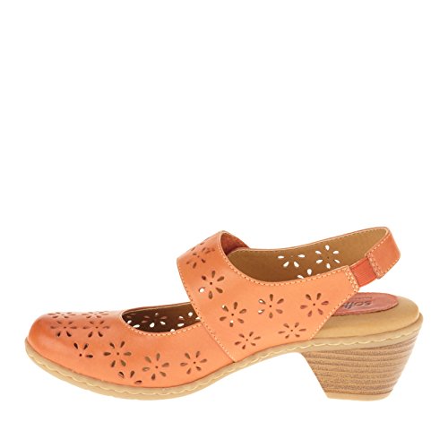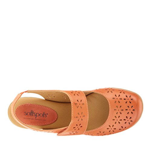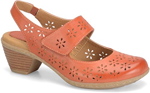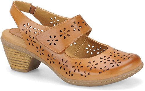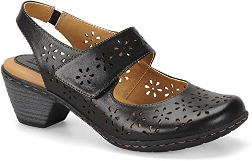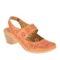 Heel Height: Approx. 2'' Tall. Floral cutouts accent this slingback mary jane. Offered in leather. Gored slingback. Strap with hook-and-loop closure. Exclusive Pillowtop comfort footbed. Stacked heel look.