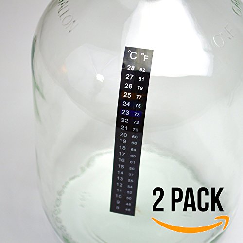 Fermenter Adhesive Crystal Strip Thermometer 46-82F (8-28C) (Pack of 2) Ideal for Kombucha, Beer, Wine, Brewing and Fermentation
