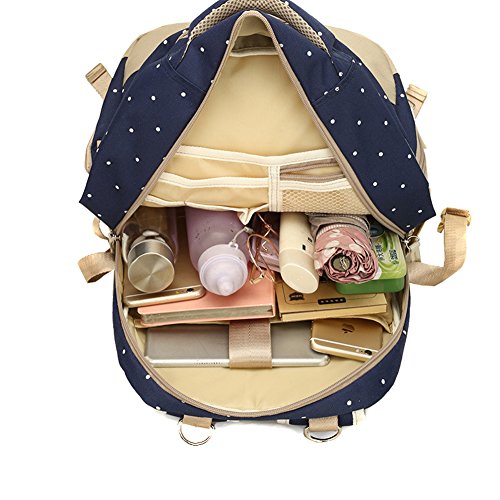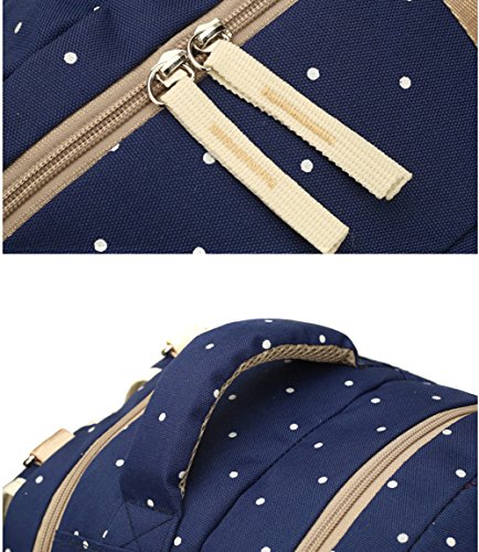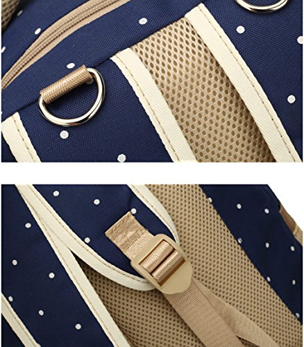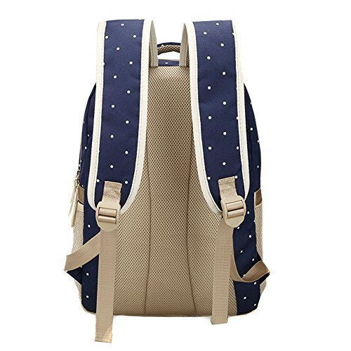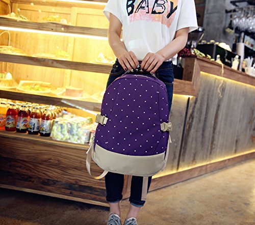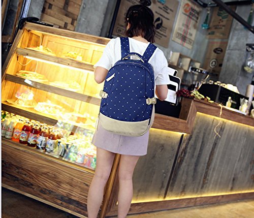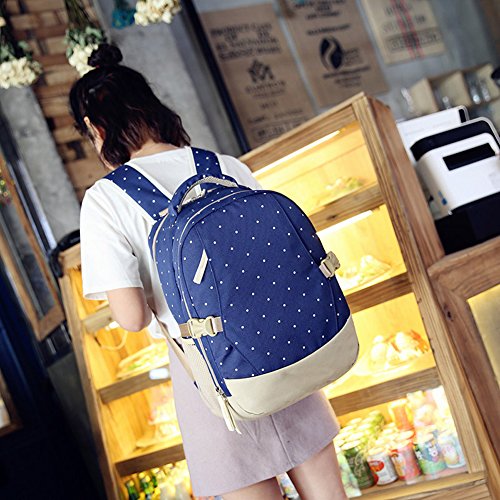 -. Title : Wave Point Casual Canvas Backpack Outdoor Leisure Polka Dot Daypack for Women and Girls School and Travel