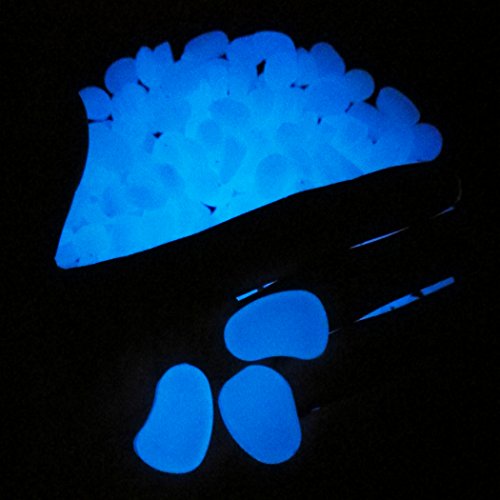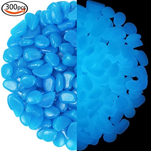 Whonline 300 Pcs Blue Glow Pebble Stone for Garden Walkways Decoration