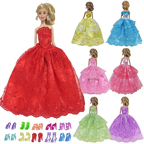Doll not included,only clothes. Package included 5 pcs different style barbie doll princess gown dress/ clothing + 10 pairs of shoes (random style).