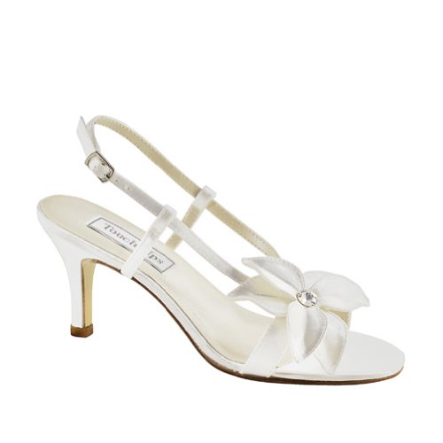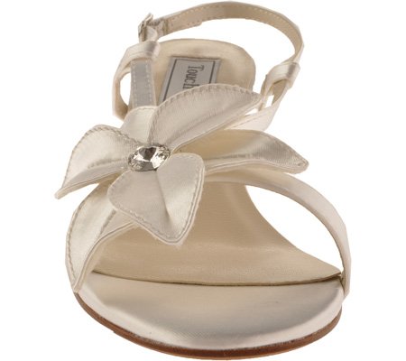 Studio : Touch Ups Publisher : Touch Ups Binding : Apparel Product Description Make your day even more special in the Cheyenne sandals from Touch Ups by Benjamin Walk.Satin upper in a dress sandal style with a round, open toeLayered floral accent at the vamp with rhinestone embellishmentHeel sling strap with an adjustable buckle ensures a great fitSmooth lining, cushioning insoleLeather outsole, 2 1/2 inch heel