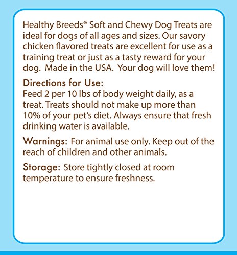Healthy Breeds Soft Chewy Dog Treats are ideal for dogs of all ages and sizes. Our savory chicken flavored treats are excellent for use as a training treat or just as a tasty reward for your dog. Made in the USA. Your dog will love them!