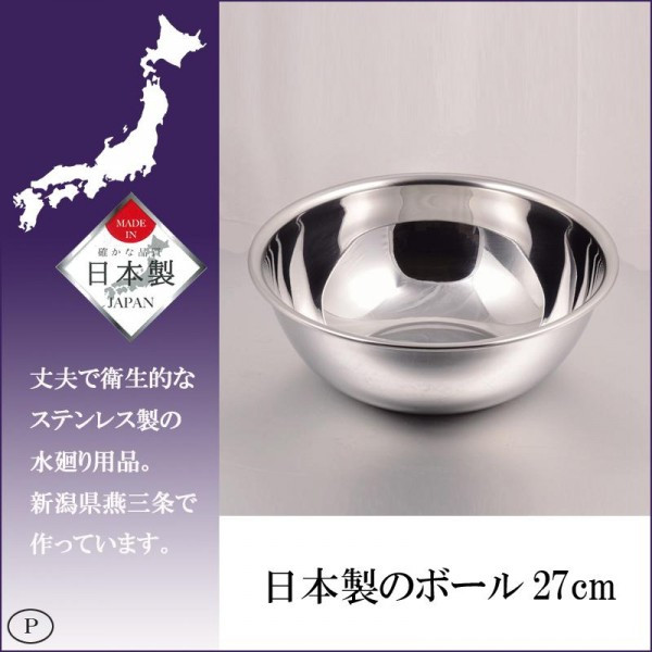 新潟県の燕三条で作られた、日本製のボールです。 製造国:日本 素材・材質:ステンレス鋼 商品サイズ:(約)外径295×高さ105mm 仕様:食洗機・乾燥機不可 ※サプライヤー直送品 ご注文後3~4営業日後の出荷となります