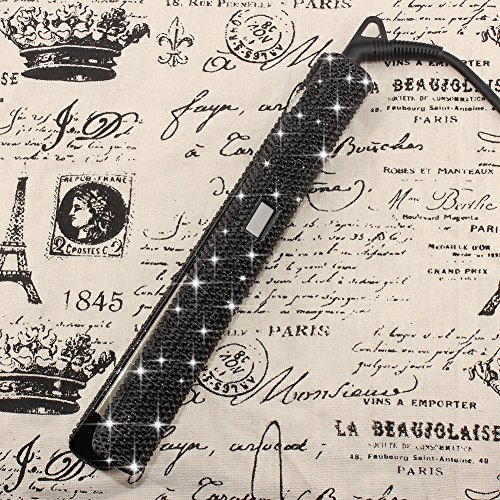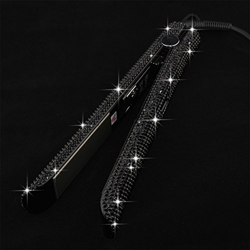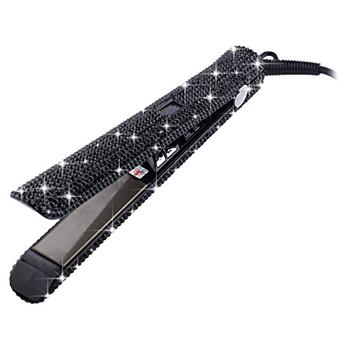 YINUO Rhinestones Crystal Diamond LCD Screen Hair Straightener 1-inch Flat Iron Titanium Alloy Plate (Black)