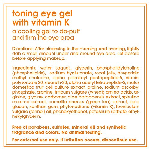Cooling lightweight gel provides immediate relief and revitalization for tired puffy eyes Niacin and Vitamin K aid in restoring elasticity and firmness helping to improve skin tone and reduce the appearance of dark circles