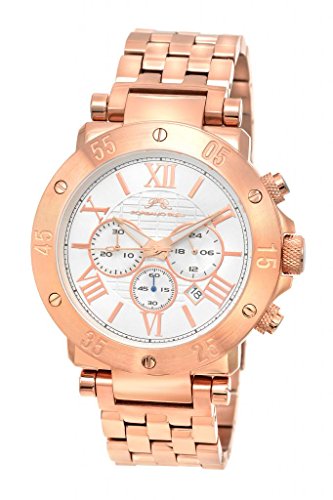 -. Feature : SALE! 47 mm case diameter; 12 mm case thickness / Rose tone stainless steel case and bracelet / Multi layer textured dial with rose tone elements / Date window between 4 and 5 o'clock; chronograph subdials at 3, 6 and 9 o'clock / Japanese Quartz Miyota JS15 chronograph movement; water resistant to 330 ft; User manual available in English, German, French, Italian, Spanish, Portugese, Chinese, Russian