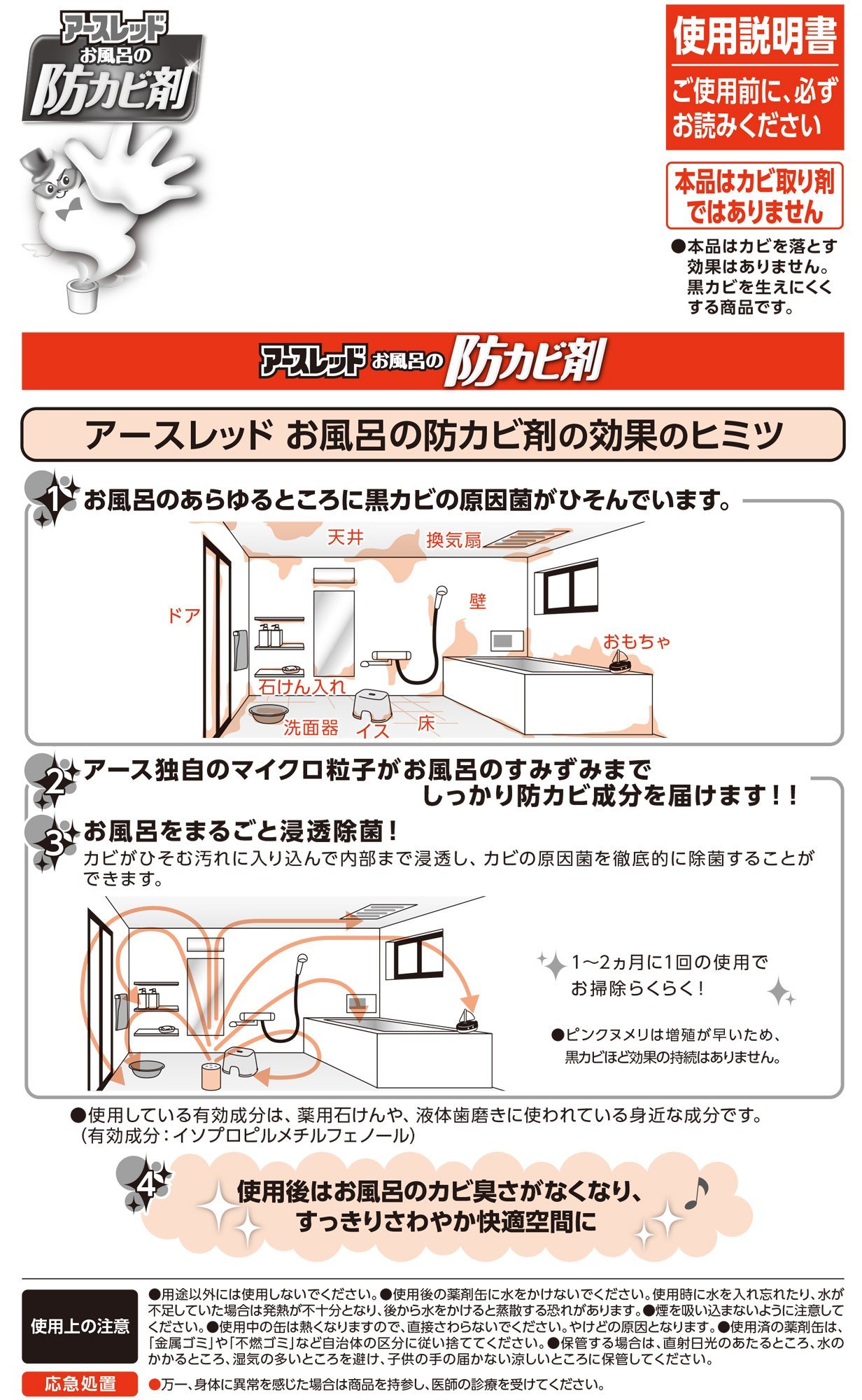 It removes the mold on the ceiling which is the cause of mold re-occurrence, makes mold less likely to grow from Moto, reduces the labor and frequency of removing molds and frequency.