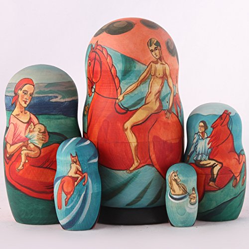 -. Title : Kuzma Petrov-Vodkin. Bathing of a Red Horse Nesting Dolls Set of 5pcs Matryoshka Dolls