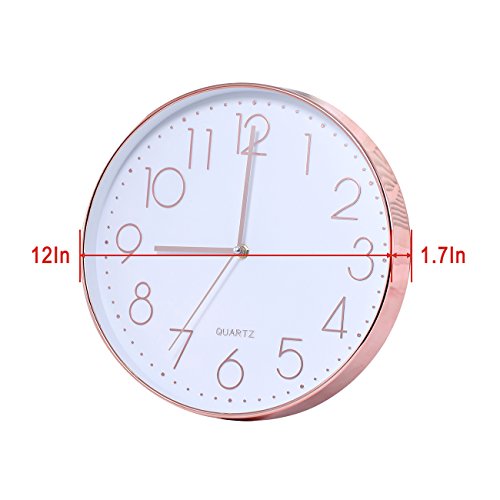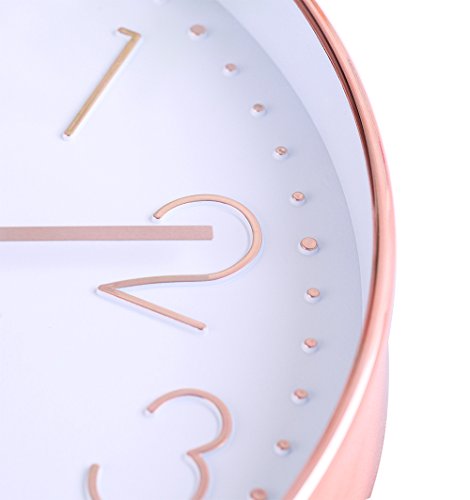 Sangyn Silent Sweep Non Ticking Digital 12 In Modern Round Decoretive Large Wall Clock,Rose Gold