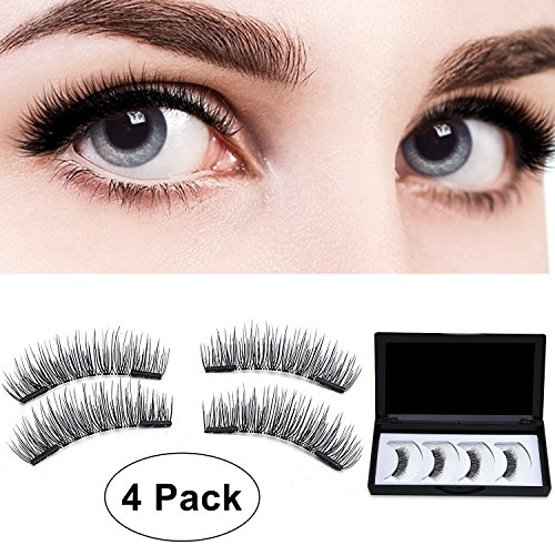 WEBSUN Magnetic Eyelashes Dual Magnet False Eyelashes Reusable 1 Pair 4 Pieces No Glue Natural Eyelashes