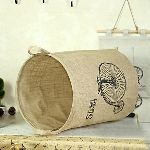 -. Binding : Kitchen -. Brand : Riverbyland -. Feature : Laundry Basket Size: 14"(L) x 17"(H) / Material: Cotton linen. Waterproof coating inside. / Design: Two carrying handles makes transporting simply. / Advantage: Humanized folding design, when not in use can receive, does not occupy space. / Multi use, perfect for not only clothes but toys and sporting goods. -. Label : Riverbyland -. Manufacturer : Riverbyland -. Model : XYD12030 -. MPN : XYD12030 -. PartNumber : XYD12030 -. ProductGroup : Home -. ProductTypeName : HOME -. Publisher : Riverbyland -. Studio : Riverbyland -. Title : Riverbyland Bicycle Pop Up Laundry Hamper