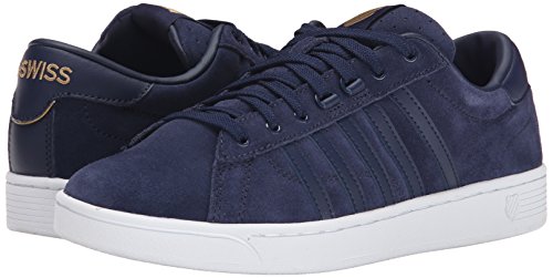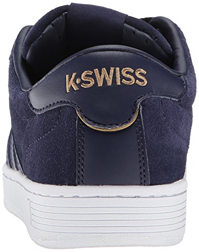 Lace-up fashion sneaker featuring D-ring detailing at vamp and five-stripe branding on sides Perforated tongue with logo patch Memory foam footbed Non-marking outsole Brand : K-Swiss Item model num : Hoke SDE CMF-W MPN(PartNumber) : 93616-401 EAN : 0888758150068 Product Dimensions(LxWxH) :