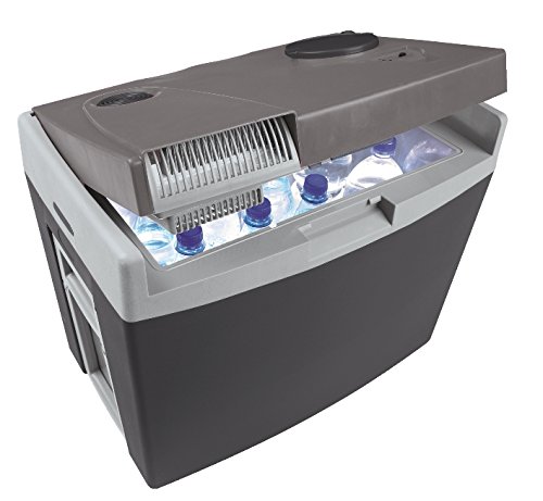 ca. 34 Liter Grau Anschlussspannung 12 Volt DC, 230 Volt AC (220 – 240 Volt) / 50 Hz eingebauter Adapter, Energieklasse A++ Kühlsystem 4 A Peltier-Element mit direktem 12-Volt-Anschluss oder eingebautem 230-Volt-Adapter