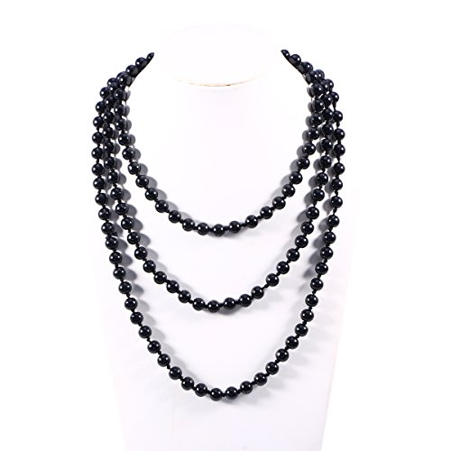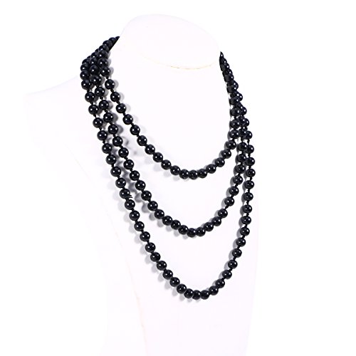 Package Including1 * 1.5M Retro Women Lady Simulated Pearls Long Necklace Chain for Sweater Decoration (Black)