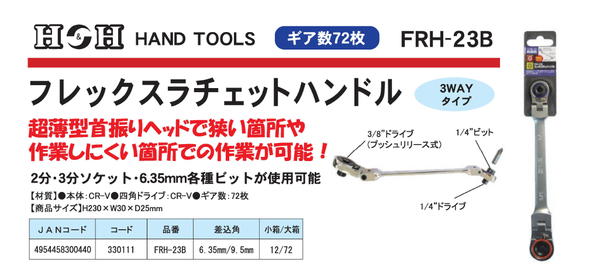 【商品名】H&H フレックスラチェットハンドル/作業工具 【3WAYタイプ】 ギア数:72枚 FRH-23B 〔DIY用品 日曜大工〕