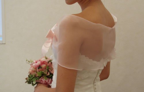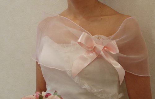 -. Title : [ショール・ストール]リボン付き、ピンクショール(ウエディング/ウェディング/ブライダル/二次会/パーティー/ボレロ/ウエディングドレス)[Y17]