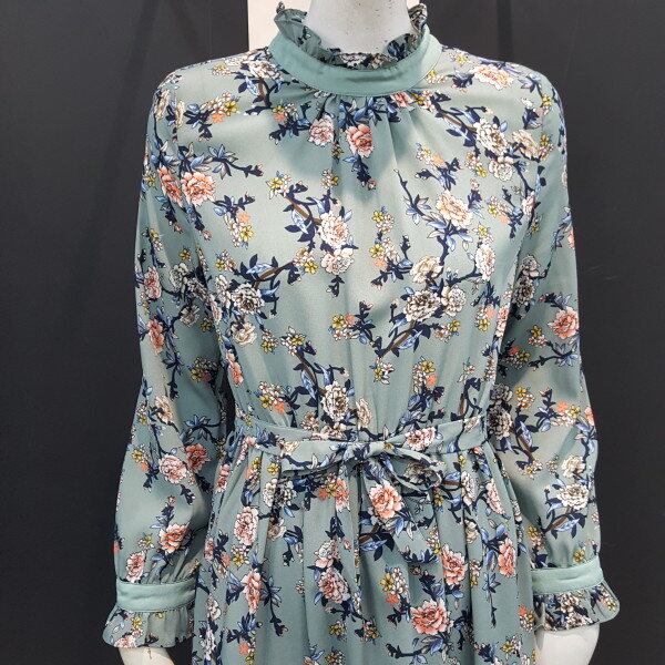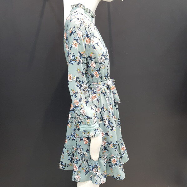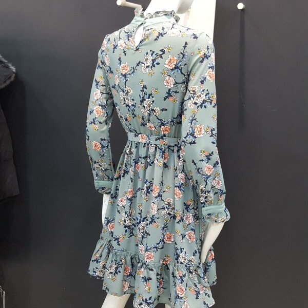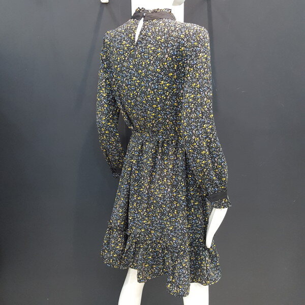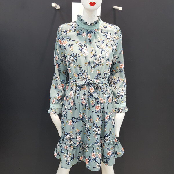 플라워패턴의 사랑스러운 쉬폰원피스입니다.허리밴드형에 넥라인과 소매,밑단부분 프릴장식으로 더욱 여성스러운 스타일입니다.