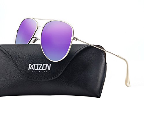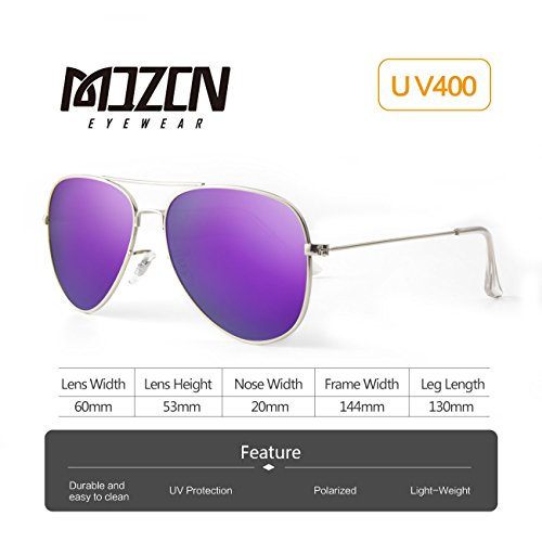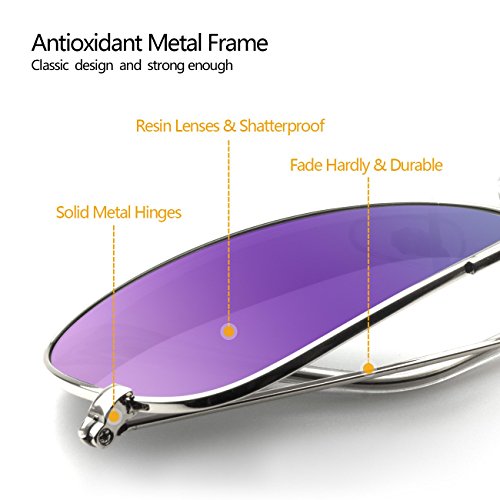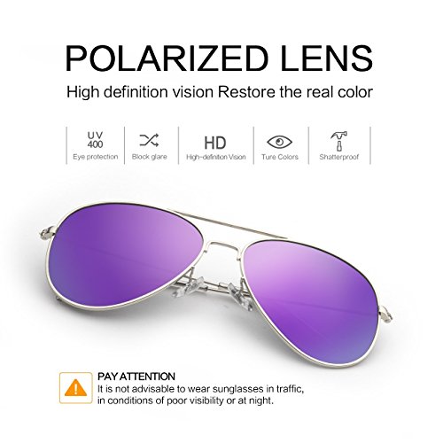 EOORAU Mirrored Aviator Polarized Sunglasses for Mens & Womens UV-400 (Purple Lens/Silver Frame)