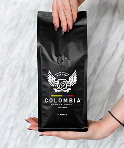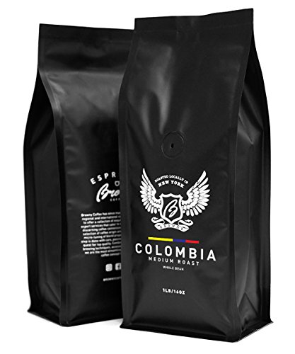 Browny Columbian Supremo Roasted Coffee Whole Beans - Premium Artisan Medium Roast in 16oz (Medium Roast, 1 Pound)