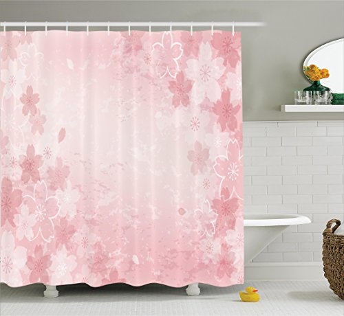 House Decor Shower Curtain Set By Ambesonne, Cherry Blooms Pattern Shabby Chick Style Decorative Flourish Fashionable Artwork, Bathroom Accessories, 69W X 70L Inches, Pink
