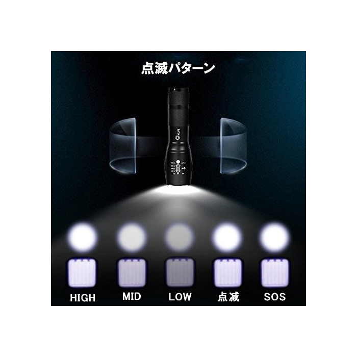 《5모드》:사용법은 매우 간단하고,점등 패턴은 전5패턴!라이트의 뒤의 스위치를 가볍게 누르는 것 뿐(만,만큼)으로 강하다→중→약→점멸→SOS모르스의 변환 를 할 수 있습니다.용도 에 따라,높음,저 출력 교환 부착,긴급시에는 플래쉬 라이트 기능이 활약.