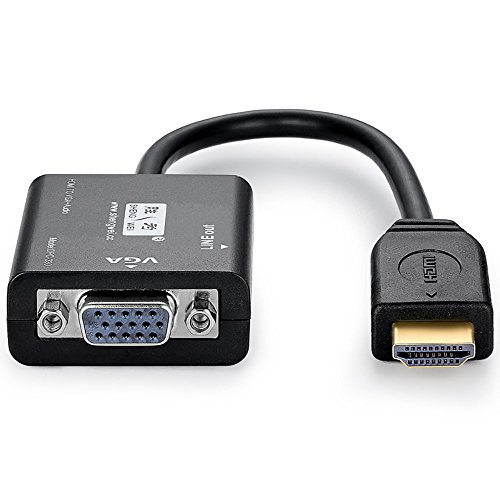 -. Feature : HDMI to VGA Adapter facilitates to connect an HDMI compatible devices( laptops, desktops, Apple TV etc) to a projector/monitor with VGA port. A VGA cable is needed.(sold separately) . / Built-in IC Chip improves compatibility and converts HDMI digital signal to VGA analog signal. / Gold-plated Connector resists corrosion, providing rigidity and better signal performance. PVC shell ensures better heat dissipation and durability. It is a good solution for connecting your HDMI compatible devices with VGA compatible displays. / Audio And HD Video Output. The adapter supports resolution up to 1920*1080(max), including 1600*1200 and 720P. With an audio port, it allows to connect your audio devices with the audio cable to stream audio and video simultaneously. / Widely Compatible for connecting desktops, laptops, notebook and other devices to a monitor or projector with VGA port.