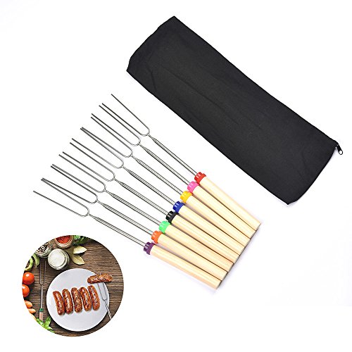 Product Description Prong distarce:1.2 inch Handle length:5.12 inch Extending length:32 inch Shortening length:11.8 inch Material:wooden、Stainless steel Please Note 1. When using these sticks, please extend it as far as possible from the fire for keeping a safe distance and for the purpose of protecting the cap on the handle from overheat melting. 2. The melting prongs can be adjustable in a slighter degrees, repeated or heavier adjustment may cause broken prongs. 3. Kids better use these under adult supervision, Handle with care.