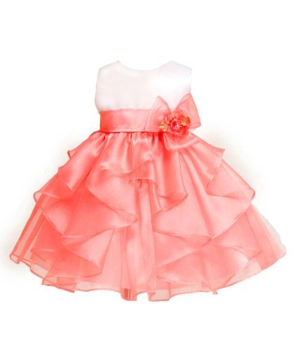Layered Organza Ruffle Skirt Pageant Party Dres; Satin bodice with Organza overlayed skirt; zipper closure and tie back; Available in sizes S-XL; 65% polyester, 35% acetate; Perfect forÊany other special occasions; Hand Wash; Made in USAFeature