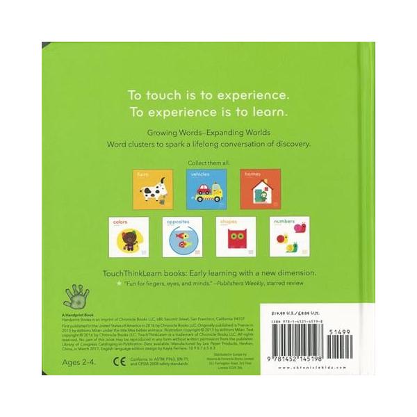 【商品基本情報】 商品名称:baby animals-touch think learn 著者/出版社:Xavier Deneux/Xavier Deneux 初版発行日:2016/03/08 サイズ:A5変判 ページ数:16 ISBN/JAN:9781452145198/4528189565098