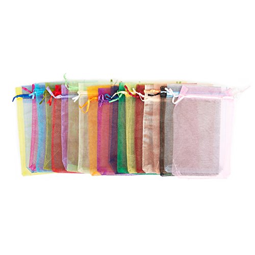 100 Pack Organza Bags - Satin Drawstring Organza Bags, Mesh Favor Bags for Decoration, Wedding Gifts, Special Occasions, Party Favors, 20 Assorted Colors - 5 x 7 Inches
