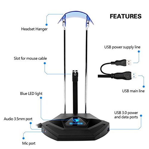 Sades W10 Gaming Headset Stand with Led Light Headphone Bracket Stand Head-mounted Display Rack Headset Hanger Holder For Gamers
