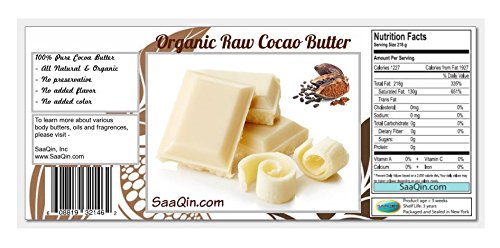 SaaQin 1 Lb Certified Organic Cocoa Butter Pure Raw Unprocessed. Incredible Quality and Scent. Us