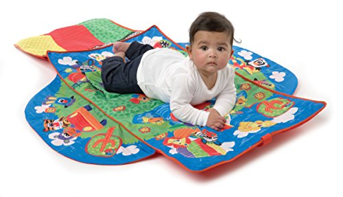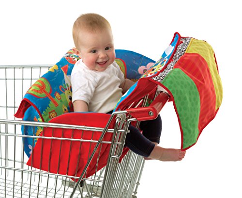 The universal Travel Along Trolley Cover coverts into three different modes: trolley cover, high chair cover and playmat. The soft padded mat is ideal for keeping baby comfortable while out and about shopping, featuring leg holes, handy pockets at the front for keys, wallet or baby toys and fun characters for baby to engage with. As a high chair cover it keeps baby comfortable and entertained while you prepare their meal. The playmat mode offers a safe place for baby to kick and play, featuring vibrant colors and interesting patterns to engage baby and provide visual stimulation.