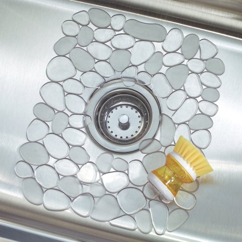Made from unique jelly-like plastic material, the one of a kind pebblz sink mat by interdesign sports a distinct appearance resembling natural pebbles found on riverbeds. This sink grid sports different textured pebbles shapes, some of which have a smooth surface while other have a brushed, rough feel; just like the ones found in the wilderness. This sink mat fits most sinks and can be trimmed down to the desired drain size by cutting away pebbles. This sink protector serves as a perfect solution for safeguarding your sink and dishes from scratches and chips for longer duration. This sink grid features a ventilated construction that facilitates easy flow of water, in and out, while preventing small items from slipping into the drain.