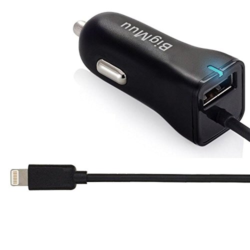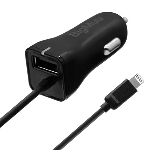 BigMuu iPhone Car Charger, High Speed Car Adapter with Built-in Lightning Connector for iPhone 7 6S Plus 6 Plus 6 Se 5S 5 5C iPad Pro Air Mini 2 3 4 and Extra USB Port