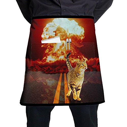 -. Title : 猫 噴火 エプロン ソムリエエプロン 腰巻き ポケット付 撥水 キッチン シェフ サロン コック ノンアイロン シワになりにくい 業務用 飲食店 男女共用