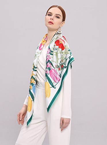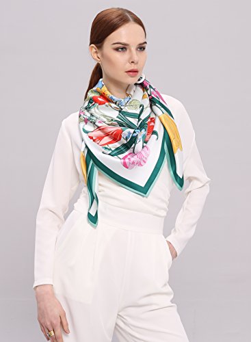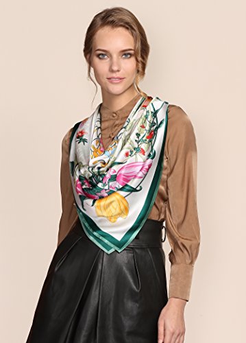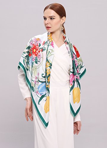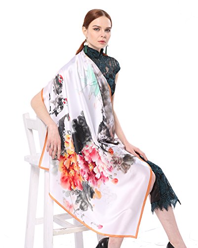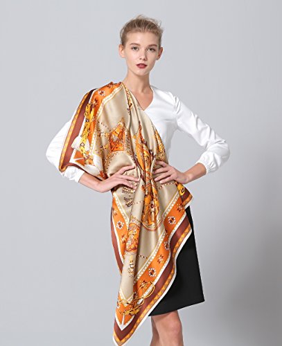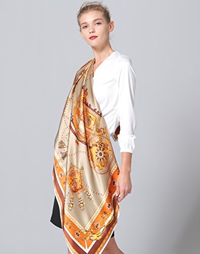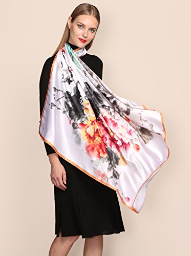 | 100% Premium Silk Satin Scarf Square Extra Large Shawl Wrap Scarves 43in With Gift Packaging |