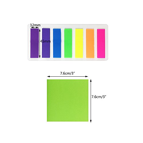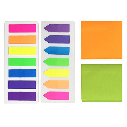 - 4 sets index labels, 5 x 2 inches, in various neon colors, including red, yellow, blue, green, orange, dark purple, light purple; 4 sets square self-stick notes easy stickers, 3 x 3 inches, green, yellow