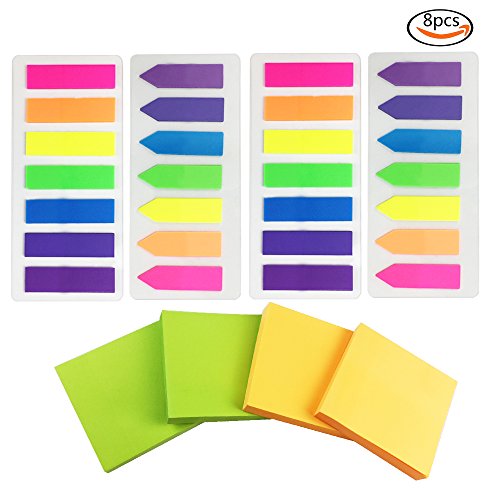 Outuxed 8 Sets Sticky Notes, 4 Sets Neon Page Markers Index Tabs Flags Florescent Notes Page Markers of 280 Sheets, 4 Sets Self-stick Note Stickers, 3”x3”, 100 Sheets/set, Various Colors