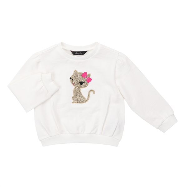 산듯한 화이트 컬러의 다이마루 소재의 기본 맨투맨 티셔츠 입니다. 살짝 박시한 라인으로 편안하게 입으실수 있습니다. 골드 아플리케 고양이 포인트로 귀여운 느낌을 주었습니다. 데님 팬츠와 레깅스와 코디하여 편안하게 입히기 좋은 데일리 아이템입니다.