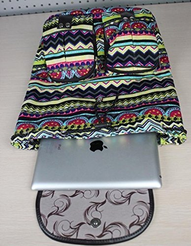 - Feature : Made of PU leather and high quality material, its size is about 37.5*33.5*14 (cm) / 15*13.2*5.13 (inches) / The canvas is of superior quality, easy to wash and dry and resistant to wear and tear. The retro print is extremely chic and makes you stand apart in the crowd. / The bag can be used for multiple purposes by ladies across a varied age group. It is suitable for school, college, travelling, camping and all other outdoor activities. It also makes a great gift to friends and family. / The bag is big, useful and spacious with many pockets. There is a larger pocket at the top and a smaller one in front with a zip to keep all your valuables. / You can carry around your book, laptop and notebook with ease in this bag. With the metal buttons on the straps, it is easy to adjust the length of the straps freely according to your need, taste and utility making it a perfect go-to handbag for your school and college.