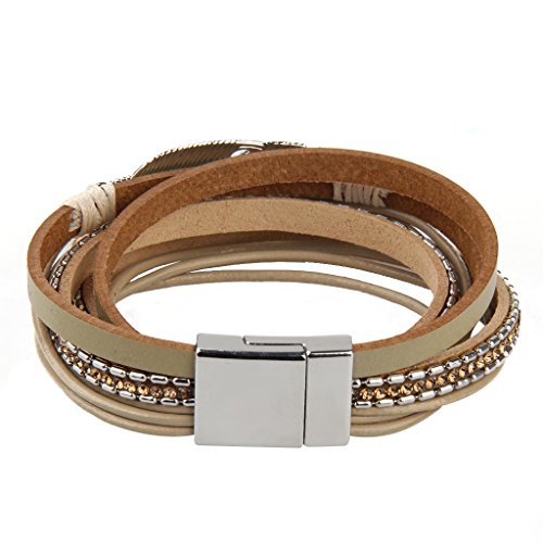 -. Feature : 👩 Superior quality: we carefully craft all our braided leather bracelets with rare, top grade materials to ensure you get a fine, artistic wrap bracelet. you will love our 100% genuine leather made to satisfy your fancy taste. neatly finished to ensure long-term durability. / 👩 Perfect outfit compliment: our exquisite bracelet for women blends perfectly with your outfit of the day giving you a unique yet classy look. accessorize with this leather bracelet while you attend parties, go for dates, or go for occasions and stand out. / 👩 An elegant classy design: our stylish leather wrap bracelet features a trendy female design that includes a simple multicolour braided with beads construction for that added silky touch. custom designed to suit your different outfit giving you that chic, eye-catching overall appearance. the best way to accent your hand. / 👩 Great size: with dimensions; 39x1.6cm, this fashion cuff bangle offers an amazing wrist fit. a comfy 34g lightweight design ensures you can wear your bangle all day long without much fuss. we also custom fit a magnetic alloy buckle to securely hold your sleek bracelet around your wrist. / 👩 An surP.R.Ised gifting idea: the timeless craftsmanship of this womens wrap bangle makes it a thoughtful yet classic gift for your special female friend on valentines, birthday or on any special occasion. get her this leather wrap bangle and show her how much you care!