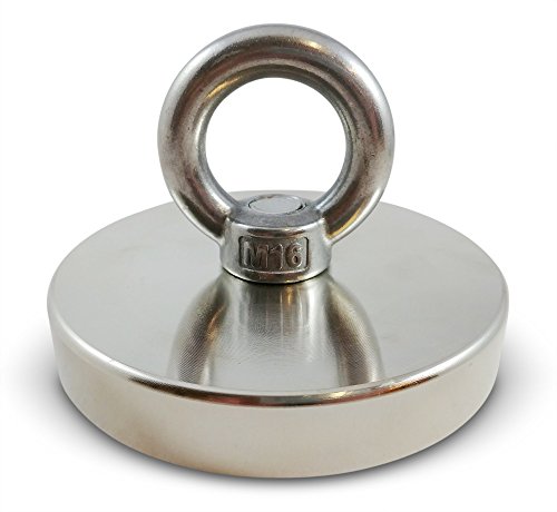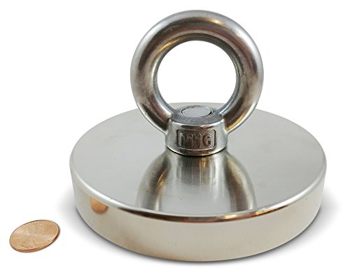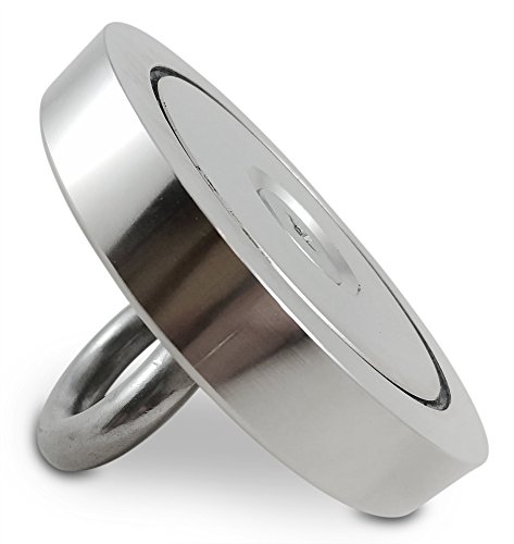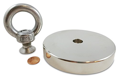 Brute Magnetics Round Neodymium Magnet with Countersunk Hole and Eyebolt, 1000 LBS Pulling Force, 4.72" Diameter - LARGEST FISHING MAGNET on Amazon