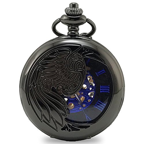 스팀펑크 앤틱 바람의 회중 시계.메탈릭인 검정,레트로인 무늬로 파란 문자판이 신선합니다.