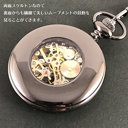 [모노G] MONOZY 기계식 태엽 회중 시계 양면 스켈리턴 앤틱 바람 로마숫자 pwbl-a