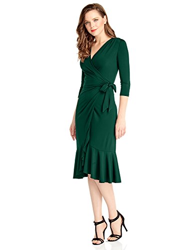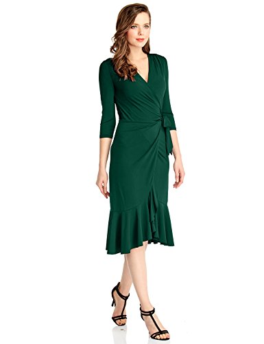 This midi dress comes with a cross over true wrap style with bodycon bodice, flared mermaid skirt and a self-tie belt.