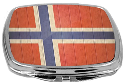 Rikki Knight Compact Mirror on Distressed Wood Design, Norway Flag, 3 Ounce