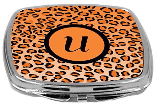 Rikki Knight Compact Mirror, Letter u Initial Orange Leopard Print
