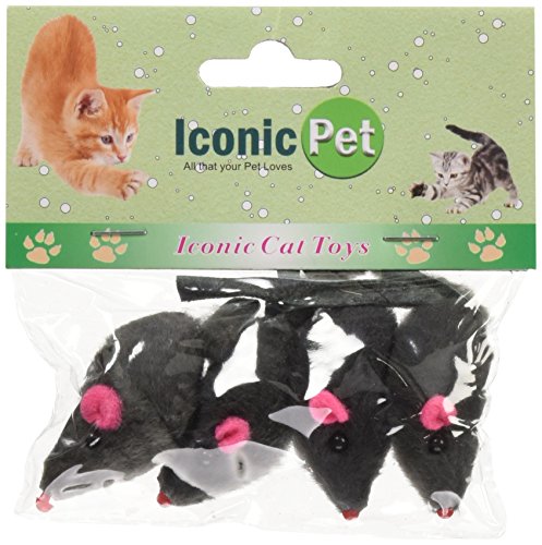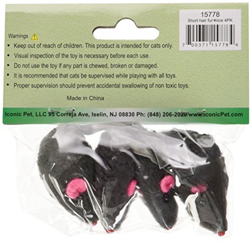 -. Title : Iconic Pet Short Hair Fur Mice Toy, Grey, 4-Pack